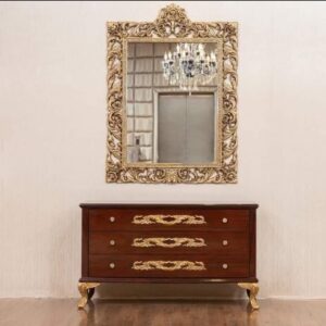 Introducing the King Style Bed, a magnificent double bed furniture that combines exquisite design with superior craftsmanship. The structure of this bed is crafted using solid Keekar wood, ensuring durability and strength. The remaining components are made from fiber and MDF, further enhancing its stability. The bed is beautifully finished with the finest quality deco paint, providing a glossy and luxurious appearance. With its high gloss finish and fine carving, the headboard and footboard are seamlessly integrated into one piece, creating a unique and visually appealing design. Experience the perfect blend of style and comfort with the extraordinary King Style Bed