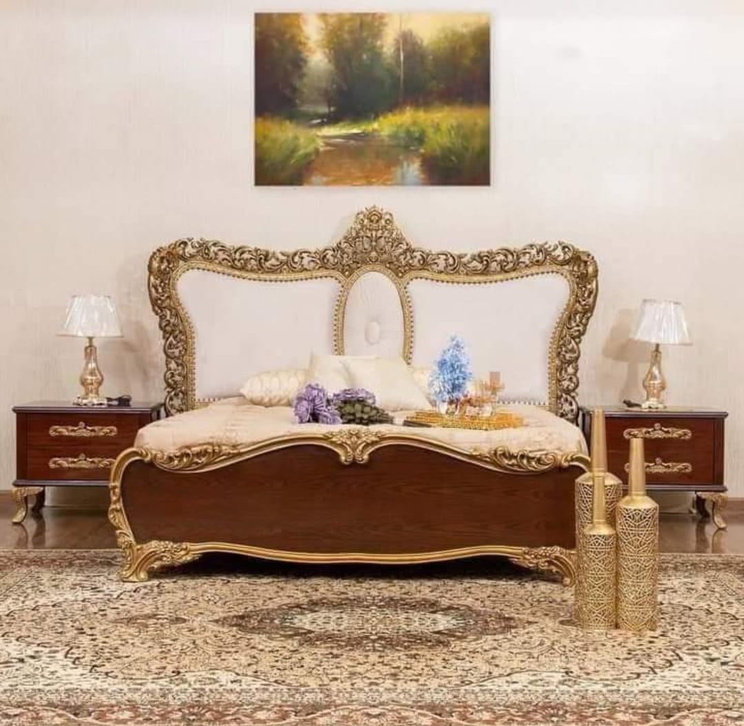 Introducing the King Style Bed, a magnificent double bed furniture that combines exquisite design with superior craftsmanship. The structure of this bed is crafted using solid Keekar wood, ensuring durability and strength. The remaining components are made from fiber and MDF, further enhancing its stability. The bed is beautifully finished with the finest quality deco paint, providing a glossy and luxurious appearance. With its high gloss finish and fine carving, the headboard and footboard are seamlessly integrated into one piece, creating a unique and visually appealing design. Experience the perfect blend of style and comfort with the extraordinary King Style Bed